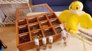 そして先月のアロマ講習会は爪をキレイに保つアイテムとして最近人気のネイルオイルでした!かわいいハーブを瓶に入れてアーモンドオイルをたっぷりと精油を少しいれて自分だけのネイルオイルが完成しました!ブログの中の人は爪を磨くのが趣味なので爪を磨いた後の乾燥予防に塗ったりしていますが 爪も普段の生活で乾燥するらしく、ネイルオイルを爪と爪の付け根に1日5回ほど塗ると爪の健康が保たれるそうです♪爪の付け根にささくれがあったり白っぽくなったり縦線ができるのを予防する効果もあるそうです(^◇^)人に物を渡すときについ目につく爪をキレイで健康にかわいく保つネイルオイルはこれからも大活躍しそうです!